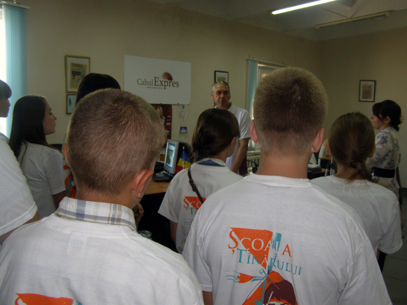 After a few months of intense study, the “young journalists” community consisting of youth between the ages of 14 and 17 from the villages of Zirnesti and Alexanderfeld in Cahul county met in Cahul in order to meet each other and to finish up the Young Journalist program with a visit to the mass media agency in Cahul.